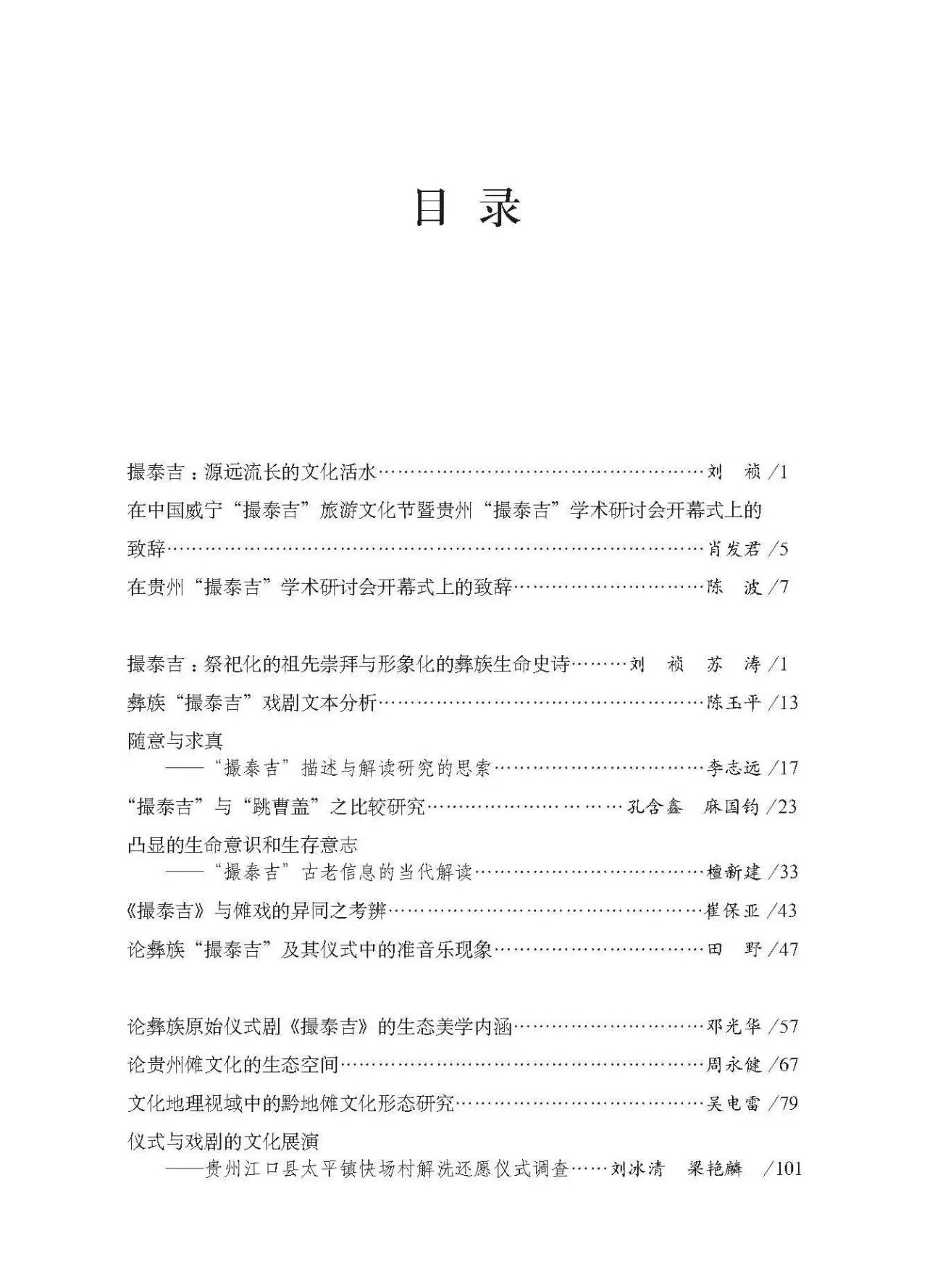 威宁彝族回族苗族自治县是贵州省面积最大、海拔最高的县,居住着汉、彝、回、苗、布依等19个民族。威宁自治县的板底乡裸嘎村所留存的“撮泰吉”,是一种古老的彝族戏剧形态,其深深植根于彝族的生产、生活及文化历史之中,蕴藏有丰厚的戏剧发生学、人类学、民族学、宗教学、民俗学、美术学、舞蹈学、生态学等研究价值,2006年被列入首批国家级非物质文化遗产名录。“撮泰吉”一词是彝语的音译,其有着完整的故事情节,鲜明的人物妆扮,表现了人们祈愿人畜兴旺、风调雨顺、五谷丰登的美好愿望。为了更深入地剖析、解读“撮泰吉”,合理利用其为当前社会发展及建设等服务,2015年8月,中国傩戏学研究会与中共威宁自治县县委、县政府共同主办一次学术研讨会,海内外近百名学者参会紧紧围绕“撮泰吉”及傩文化展开了深入而广泛的研讨。本书既为择选优秀的会议论文汇编而成。本书所收的《撮泰吉:祭祀化的祖先崇拜与形象化的彝族生命史诗》、《彝族“撮泰吉”戏剧文本分析》、《随意与求真——“撮泰吉”描述与解读研究的思索》、《“撮泰吉”与“跳曹盖”之比较研究》、《凸显的生命意识和生存意志——“撮泰吉”古老信息的当代解读》、《“撮泰吉”与傩戏的异同之考辨》、《论彝族“撮泰吉”及其仪式中的准音乐现象》、《论彝族原始仪式剧“撮泰吉”的生态美学内涵》等文章,都是紧紧围绕“撮泰吉”展开,是研究“撮泰吉”的最新研究成果。《韩国面具戏(非特质文化遗产)的保护情况和改善方向》一文所涉及的有关韩国在傩文化保护方面所采取的措施,为我国开展傩文化研究与保护有着很好的借鉴意义。另外还有分别从生态学、舞蹈学、音乐学、民俗学、美术学、艺术学、比较学、傩面具等视角进行的研究文章,对深入推进傩戏、傩文化研究有着很好的学术累积意义。