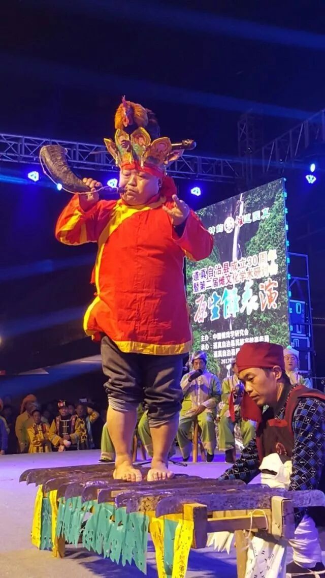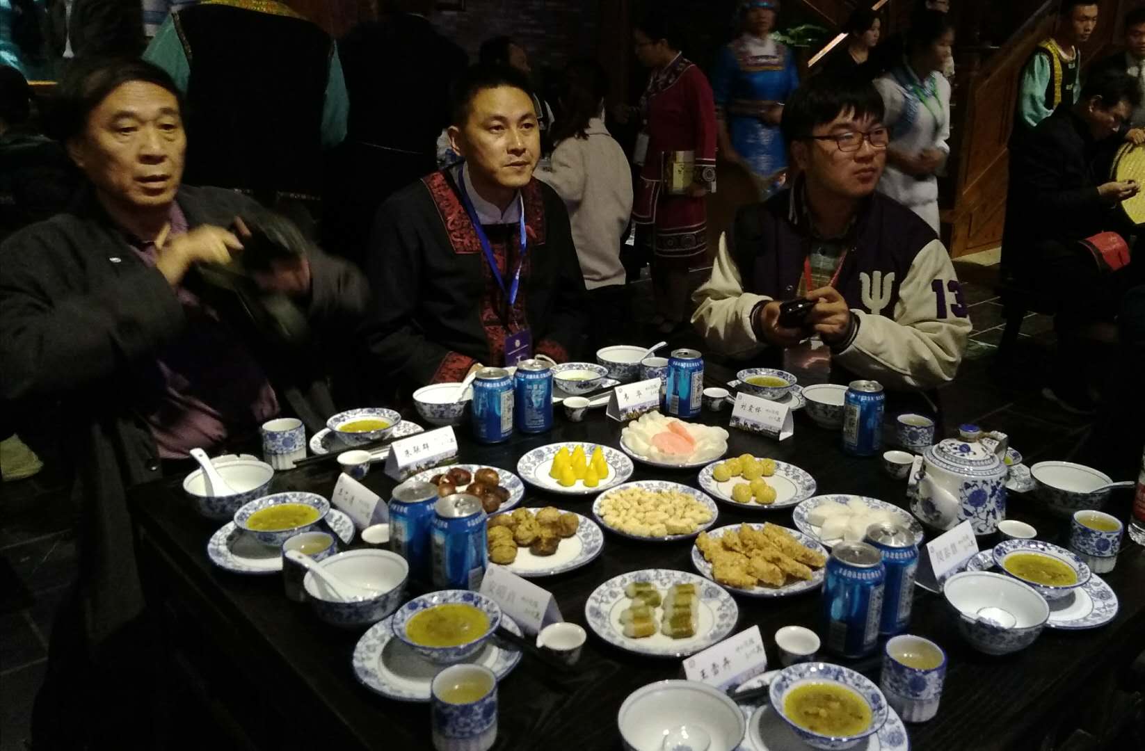 晚上,在当地各民族群众热情的招待下,与会专家领略了国家级非物质文化遗产“三幺台”,该项目是仡佬饮食文化中的宝珍。同时也一并欣赏吐火、柔术等当地民俗杂技项目。