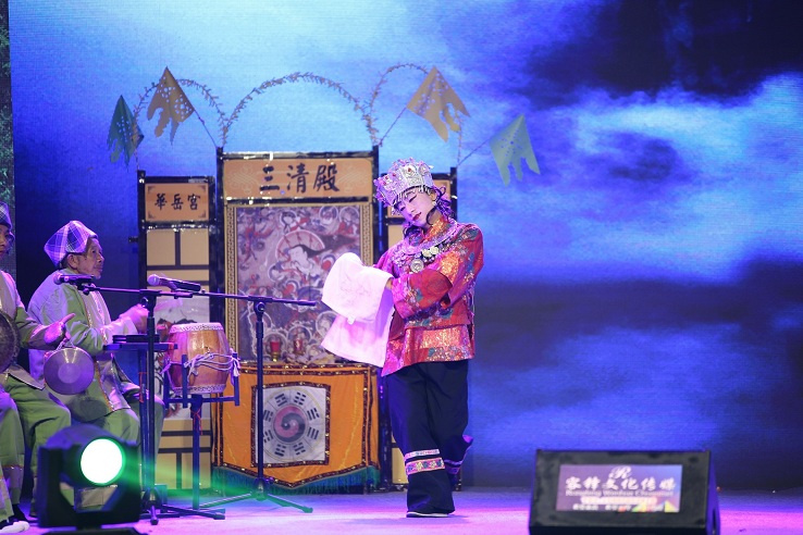 阳戏:只有男演员的傩戏演出。图为男演员扮演女性角色
