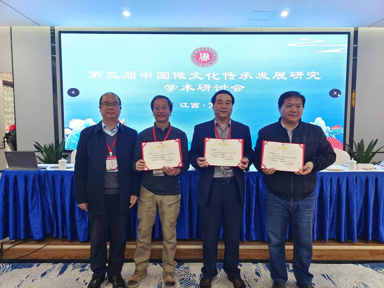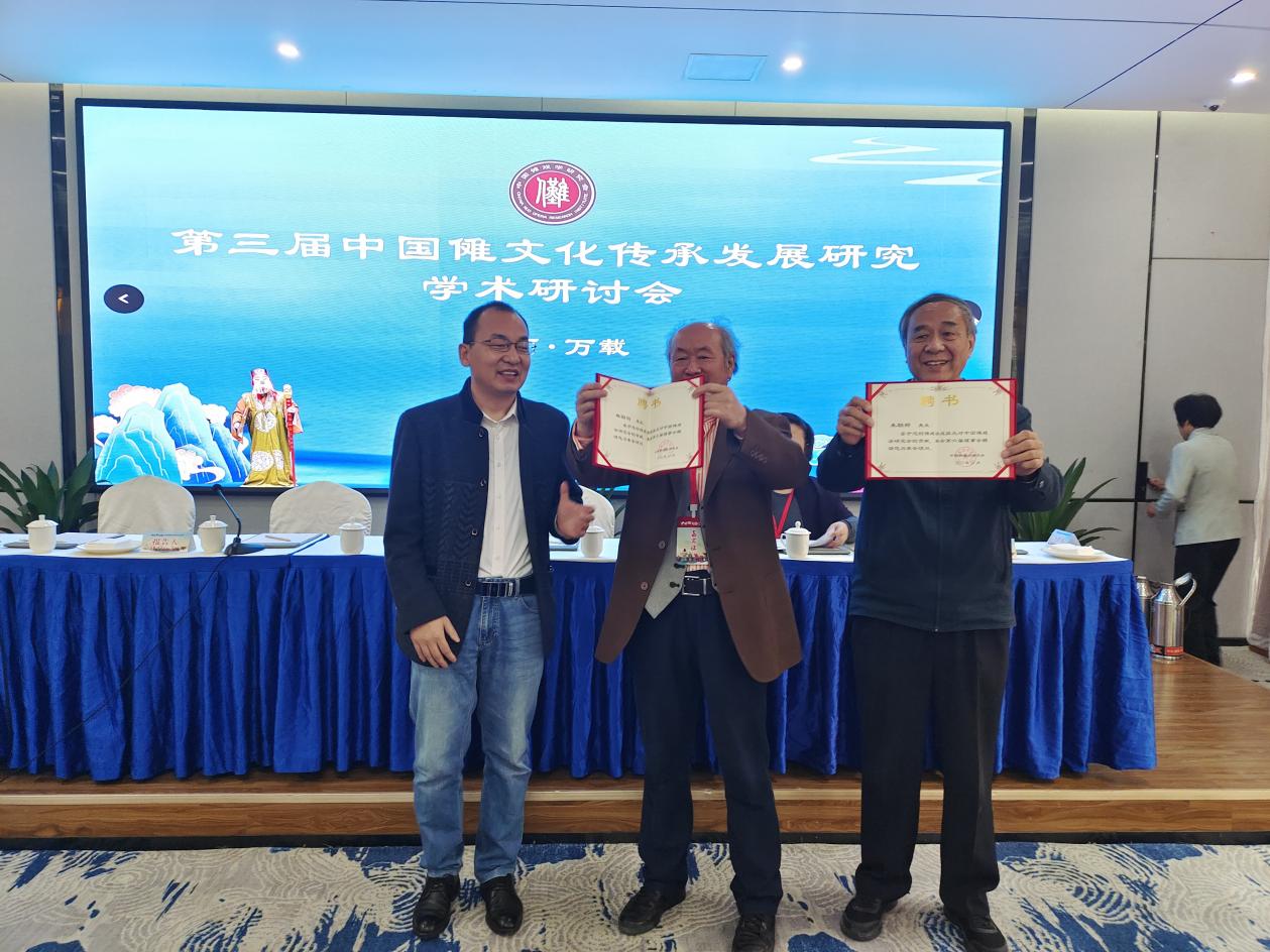 第三项,由我会副会长陈玉平,向出席本次学术活动的理事代表,赣南师范大学副教授黄清喜先生,安徽省池州市贵池区戏剧家协会党委书记、副主席檀新建先生,云南省昭通市文化和旅游局王勇先生,颁发理事聘书。