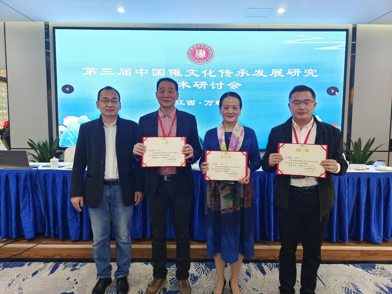第二项,由我会会长李志远,向出席本次学术活动的常务理事代表,南昌师范学院教授、江西基础教育研究中心主任、江西省舞协主席刘永红女士,贵州民族大学文学院副院长、教授吴电雷先生,湖南省郴州市文旅广体局原局长、一级调研员周作明先生,颁发常务理事聘书。