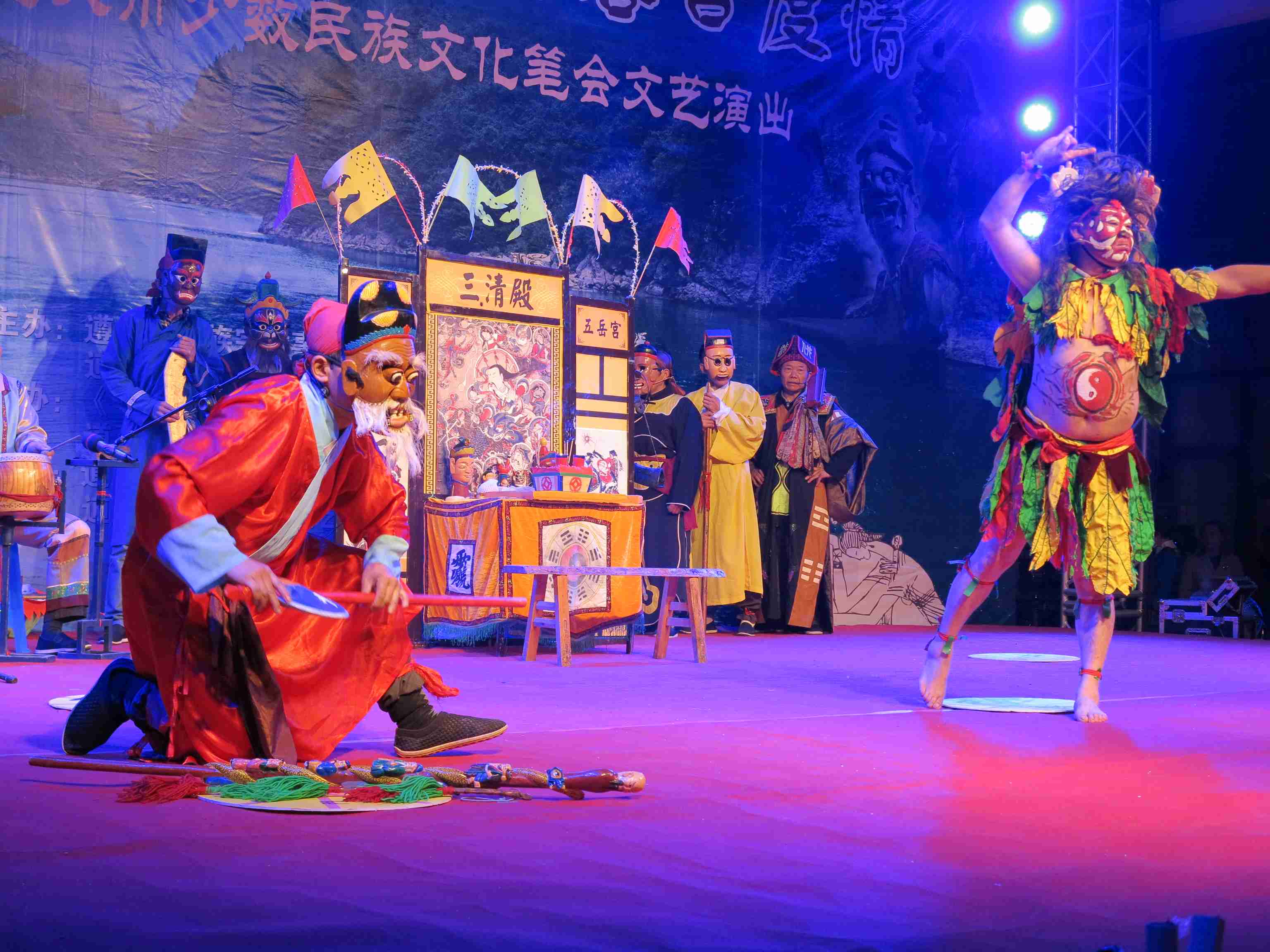 遵义市少数民族文化笔会期间的"山王破狱”表演