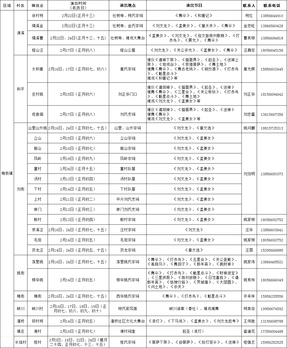 安徽省池州市贵池区梅街镇“2024年春节期间傩事活动安排日程一览”