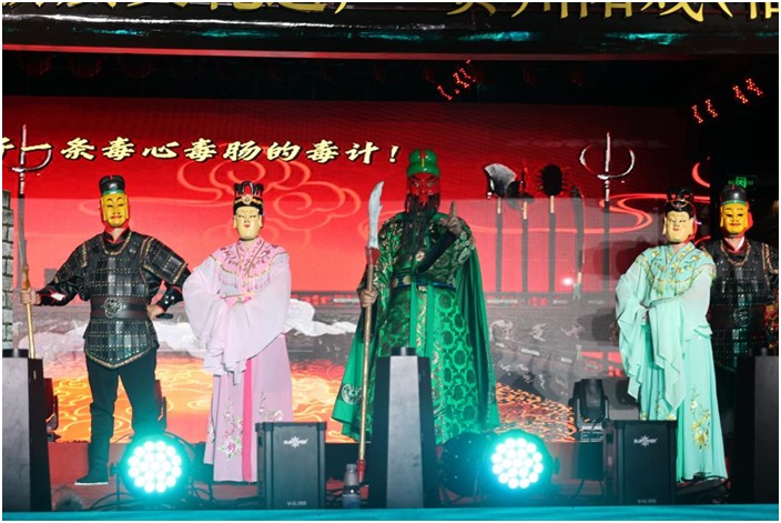 开幕式文艺演出呈现了多个带有阳戏元素(面具、唱腔、服饰等)的创编节目,包括开场节目《傩耀戏乡》、阳戏舞蹈《苗岭傩魂》、阳戏剧目《孟良盗宝》、说唱《阳戏说唱新时代》、男子群舞《追傩》、阳戏展示秀《傩·面》等。