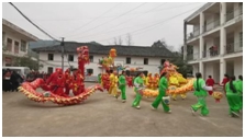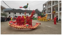 3月1日上午,剑阁县文旅局文艺股股长刘彦伶、剑阁县文化馆馆长杜德安和非遗专干孙榕陪同考察团,首先考察了同为四川省级非遗的白龙花灯舞,观摩了白龙镇广坪袁家窝花灯队表演的《蛇年送吉祥》《仙女采茶》《四季发财》《花子闹灯》《龙凤呈祥》《仙女散花》《鱼跃龙门》《和尚闹灯》等十三场灯舞及小戏。白龙花灯舞是一种脱胎于当地花灯戏,以多种造型的“灯”为主要道具,以“灯阵”为主要表演形式,以“耍灯”为主要表现手段,以“祛邪祈福”为美好愿望的大型综合性民间舞蹈(剑阁县文化馆《剑阁花灯舞蹈集成》,1979年3月),包含有园宝龙灯、狮灯、凤凰灯、鱼灯、马灯、牛灯、排灯、花灯等多种灯型和数十个舞蹈阵法,还可以穿插闹子、花子、和尚等角色的风趣小戏表演。部分小戏如《出灵官》《出五虎大将》等的现存剧本与傩戏剧目相近,显示着其与傩戏间曾经的渊源。随着时代的发展,传统的花灯舞也会适当创编新内容,如为今年(乙巳蛇年)新编的《蛇年送吉祥》花灯群舞。