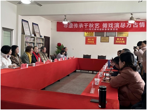 杨村傩戏,历史上有“舞阳(杨、扬)花戏”“巫门道教戏”“阳戏”“还愿戏”“了愿戏”等多种称谓,可追溯的传承谱系已有八代,现有三十多名骨干艺人,能够参加演出的人员可达七八十位,且保存有较清晰的表演规范、较丰富的道具实物、较系统的文献资料,可见其整体保存状况较为完好。3月2日下午,为了更好地对杨村傩戏加以保护、挖掘、传承和发展,在杨村傩戏传习所的会议室,剑阁县文旅局副局长李光凡和杨村镇党委书记王加杰联合主持召开了“杨村傩戏保护传承座谈会”,重点听取考察团专家的指导意见。