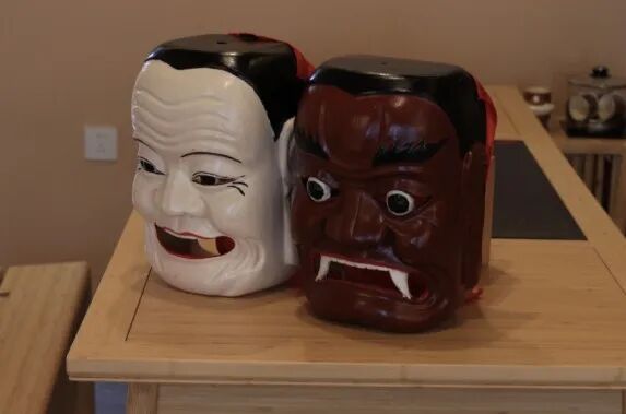 邵武傩舞面具:弥勒(左)、开路神(右)