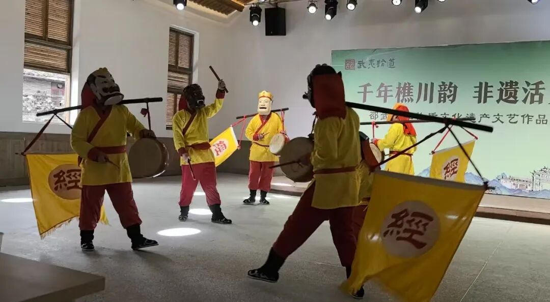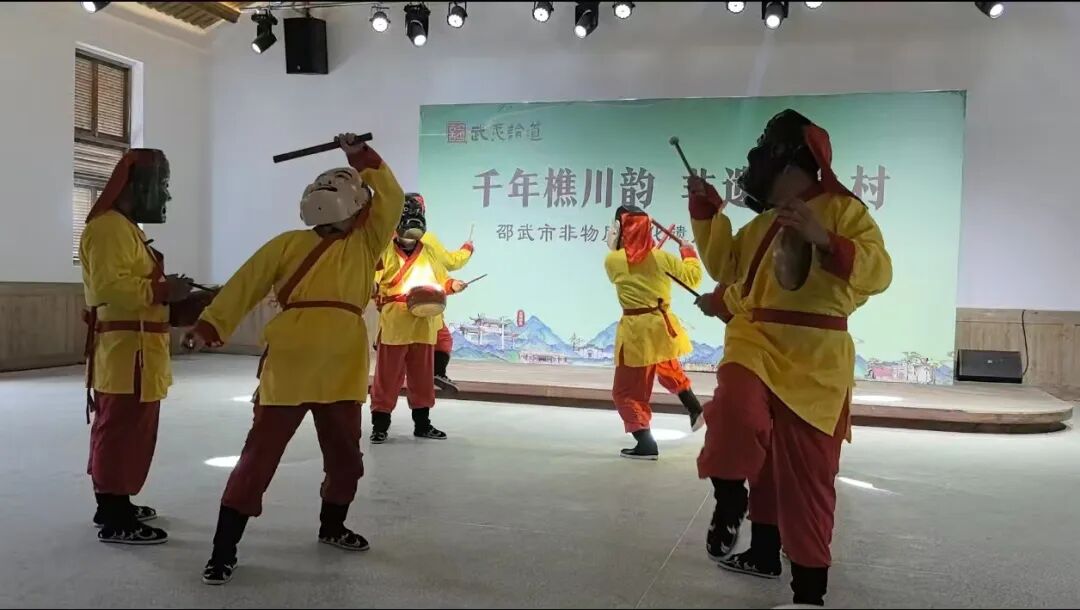 在观摩傩舞的同时,两校师生还有缘一睹稀有剧种三角戏真容。22日下午,邵武市委常委、宣传部部长张晟,文明办主任朱志明带领两校师生参观了位于邵武市区的“竹立方”生态科创馆,以及元·和平数字体验馆。邵武市人民政府党组成员、副市长邓炜华向参会师生介绍了邵武傩舞、三角戏的当下传承保护发展现状。在邵武的新产业、新技术空间,同样随处可见傩文化的身影:与游客在大屏互动引导的傩舞数字人“小和”、充满萌感的傩面表情包……傩舞不仅是邵武最富历史情韵的城市名片,也在科技创新的时代大潮中以悠远厚重的文化底色凝聚共识,再次奋勇“开路”。