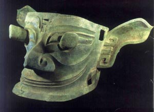 综上所述:故推断青铜人像既是主持禁祀的巫师,又是蜀王蚕丛。事与古时王者兼群巫之长,实出一撤。“三星堆”出土之青铜巫师像,纵目面具,神树和大量祭祀器皿,向人们揭示了,距今4800至3000年的蜀族先民不但崇尚祭祀,其祀已由“神人相通”的巫师主持。与历史上传说巫觋在社会中的地位与职能,极为相似。同时“三星堆”的出土文物,也为今人的傩文化研究注入了崭新和最有力的例证。