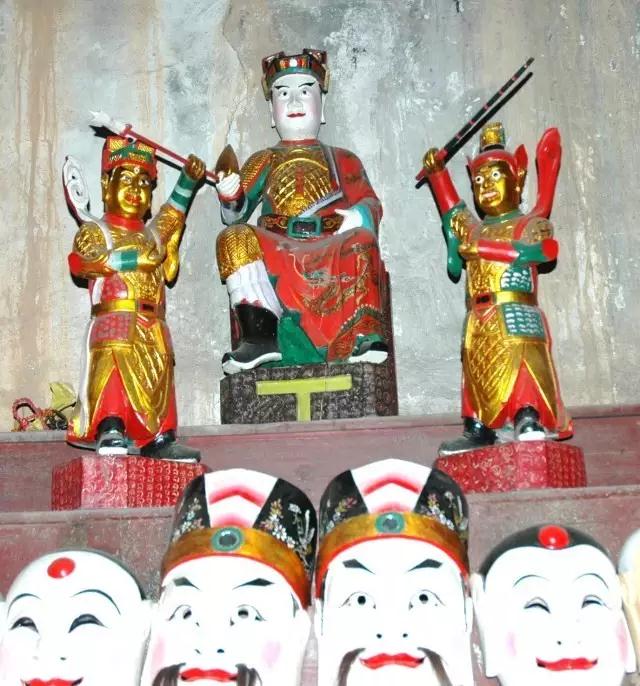 首先是道教人物登上了傩坛。傩神殿主神灌口二郎本为治水英雄李冰,后被道教捧出来的灌口二郎清源真君赵昱扰得含糊不清,只好不称其名。道教始祖张天师原也不是傩坛主角,当《召将》列入傩舞节目后,张天师和马赵关温四天将成了驱疫斩妖的主力,外坊跳傩,必跳《召将》逐疫。《装跳》仪式更是张天师的专利,由他直接率众斩妖除怪。