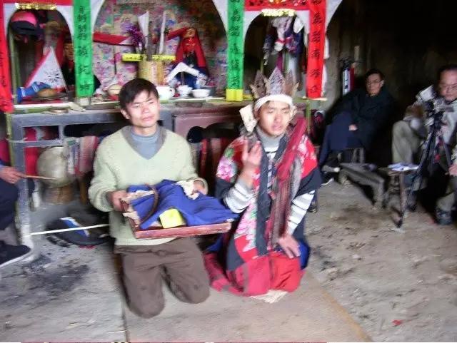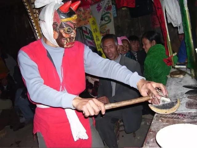 还愿:当地村民在遇到灾难、疾病时请傩坛法师卜卦,在法师面前向神许愿,愿望实现后(身体康复、灾难消除)举行还愿仪式。所许之愿实现,被认为神答应了人的请求,赐福于人,许愿者便要宰杀许愿时所许下的牺牲以酬神。