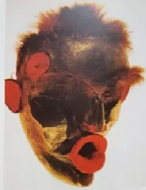 如果进一步考察傩戏面具的五官构造,尤其是那些凶神怪灵和世俗人物面具的细节特征,我们会发现,附着在它上面的文化记号,是如此的怪异而比例失调:轮廓式浮雕、尖竖的犄角,或许还有失落的胡须和羽毛,前凸的硕大额头,五官尤其是眼睛, 和嘴巴的细节被刻意放大突出、扭曲变形:睁大以至暴突的眼珠、或凹陷的镂空的眼窝,从眼窝里伸出来的圆柱形的眼睛?紧闭或线性拉长的嘴巴、外翻的圆张的大口、獠牙外翘、上下倾斜或无牙缺齿掉颌的大嘴?在强烈的装饰性色彩和神秘的线条纹样包裹之下,那些隆起的暴露的部分和凹陷下去的阴影部分之间是什么关系?