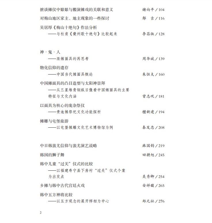 本书所收论文点面结合,方法多样,与中国傩戏学研究会近年已出版的以贵州、江苏等地傩戏傩文化为中心的《古傩新论》、《祭祀与傩》、《吴风楚韵》等论文集一起,展现出中国傩文化的丰富多元图景,以及当今傩戏傩文化研究的巨大潜力与学术价值。