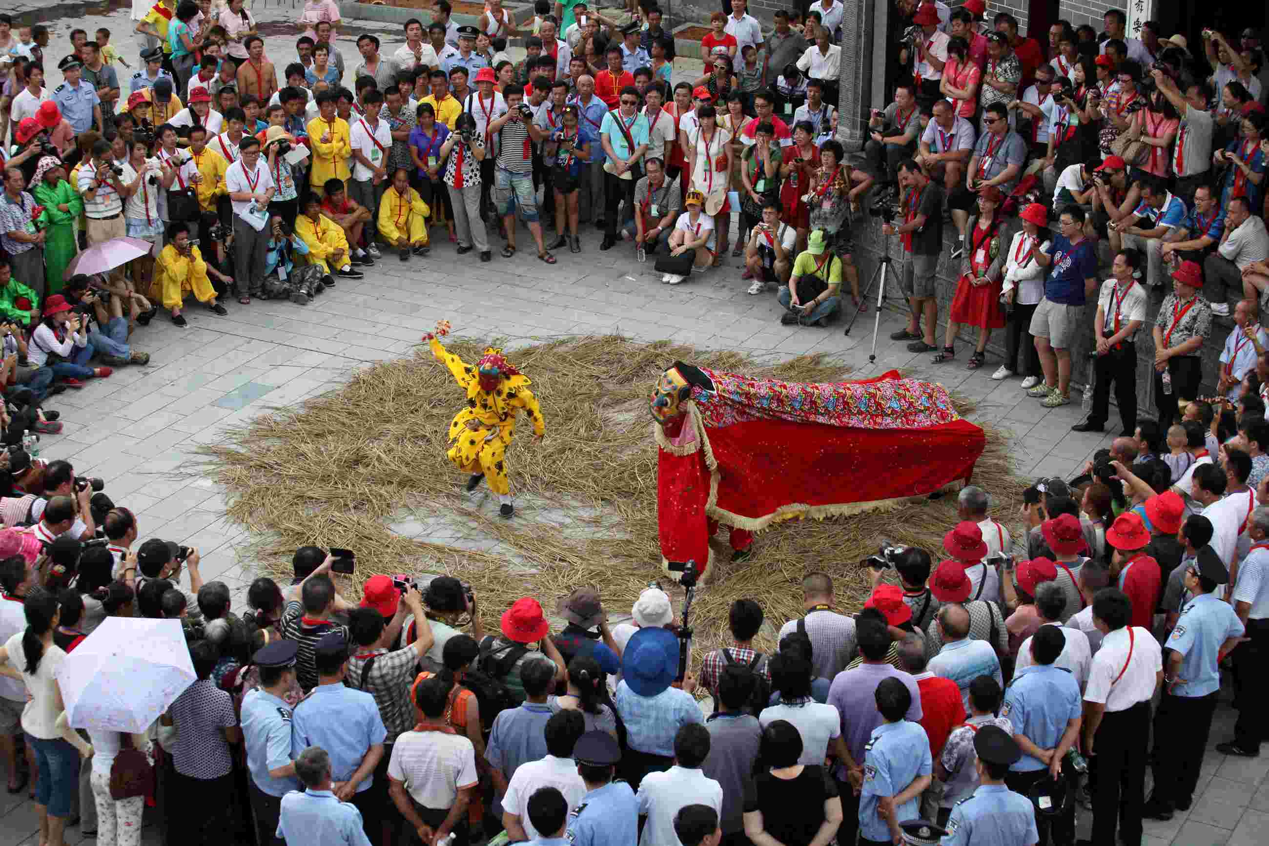 临武傩戏,明成化年间由永州市蓝山县里田传入,现存于临武县大冲乡油湾村,当地人称为“舞岳傩神”、“神狮子”。傩戏与傩祭共存,每年只在正月里表演,以心口相传的方式流传至今。分内坛傩戏与外坛傩戏。现存剧目有内坛傩戏《三娘寻夫》、《过三关》、《盘问土地》等,外坛傩戏《打神狮》等关目。曲牌与锣经自成体系,“过山锣”、“游锣”、“一尺扣布”、“一杯酒”、“下南京”等,都具有地方风味。面具有三娘、土地、三郎、夜叉、来宝、关羽、狮子、猴王、小神等九副,皆用樟木雕刻、上彩。傩坛布置精致,集编扎、剪纸、染印、绘画、书法等艺术为一体。