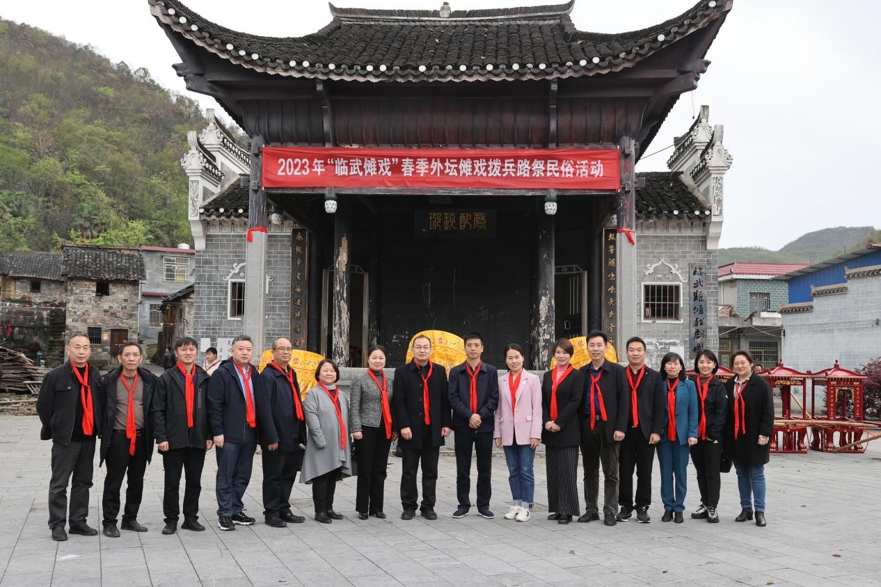 湖南省郴州市临武县文化旅游广电体育局和临武县傩戏剧团为配合国家级非物质文化遗产代表性传承人数字化记录工作,于2023年4月8日至9日,在临武县水东镇油湾村组织开展临武傩戏春季外坛傩戏拨兵路祭民俗活动,邀请中国傩戏学研究会李志远会长、陈玉平副会长和詹怡萍秘书长前往观摩,并考察临武县傩文化研究基地近年的建设情况。