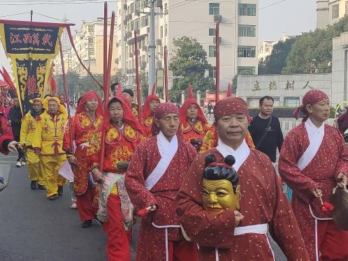 上午8点,来自抚州南丰、乐安、崇仁、宜黄各县,以及九江德安、上饶婺源、吉安永丰、萍乡上栗、宜春万载、赣州宁都等省内其他市县的十余支傩队,以及黎川舞白狮、福建建瓯挑幡、萍乡北刘轿舞等助演队伍数百人,由中信大酒店出发至展演所在地桔都文化广场,举行了声势浩大的踩街活动。