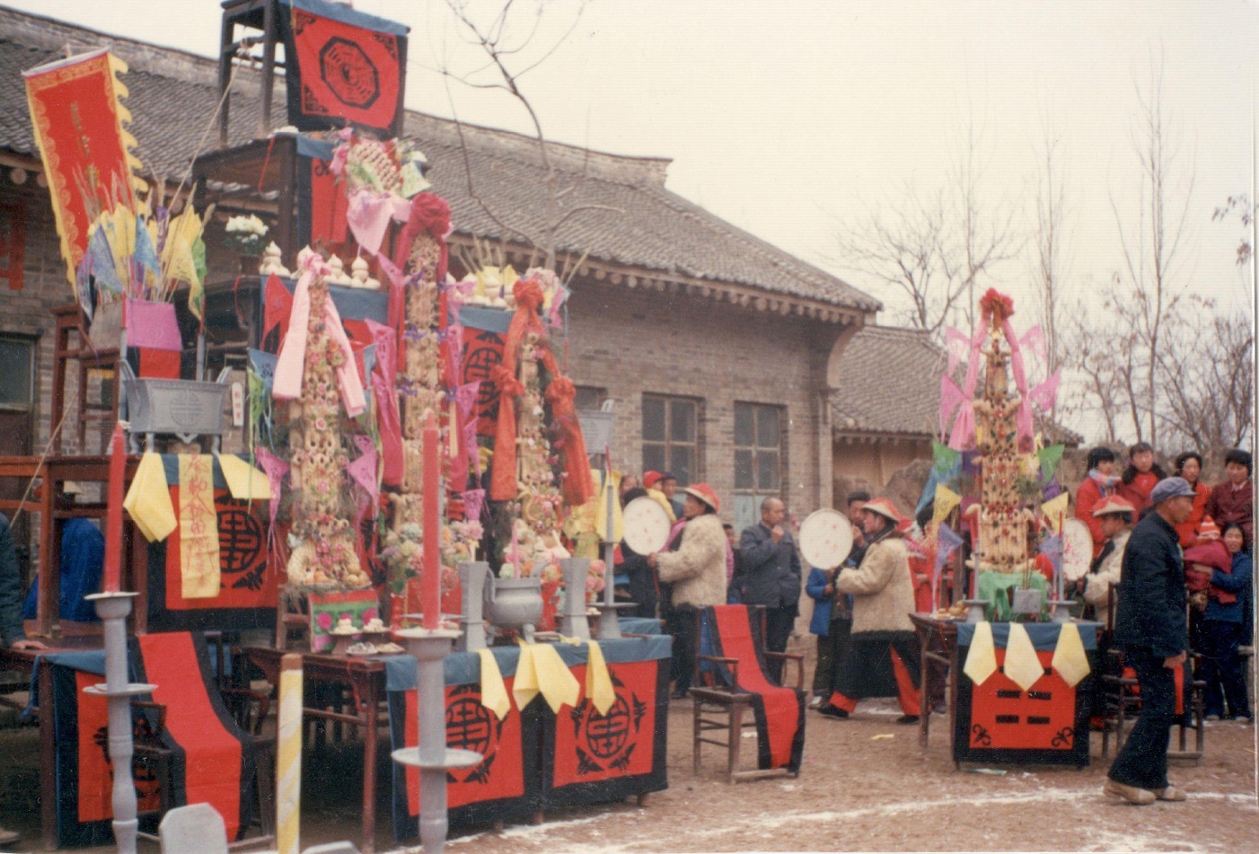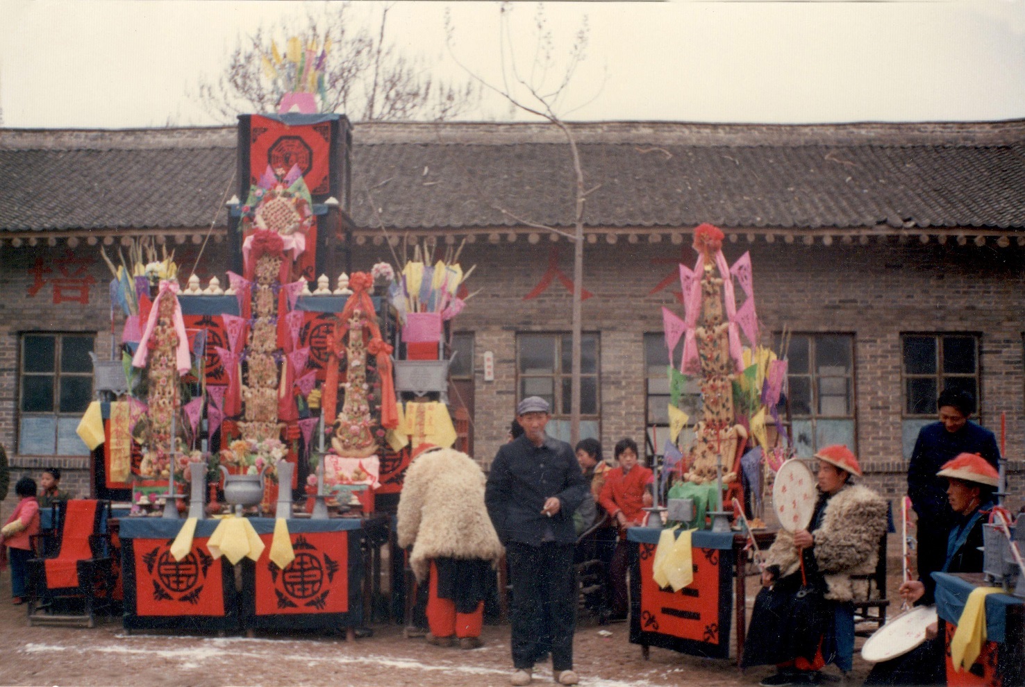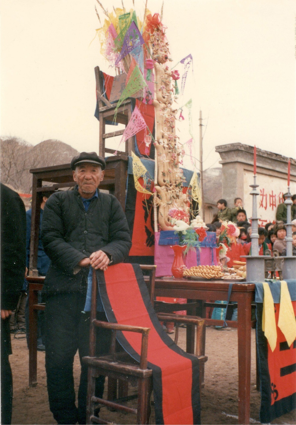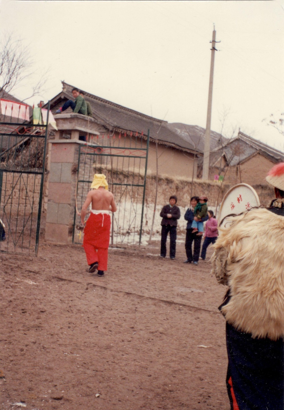 74-1990年 4⽉ 6⽇,任庄村⺠为中国傩戏学国际学术讨论会表演《扇⿎神谱》的盛况(张芳森摄影)
