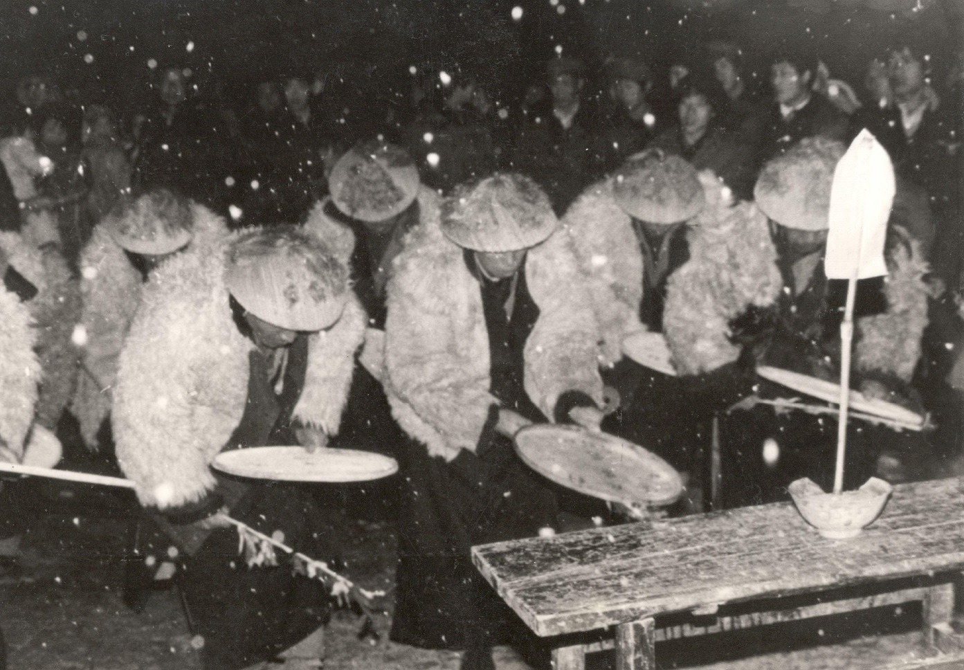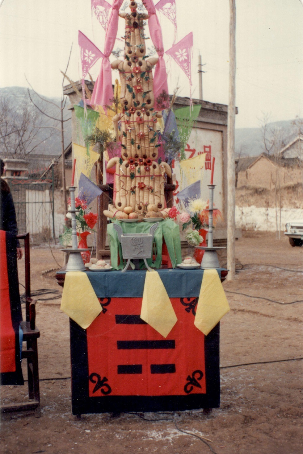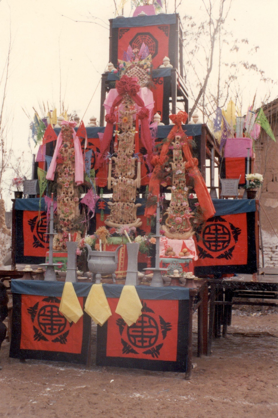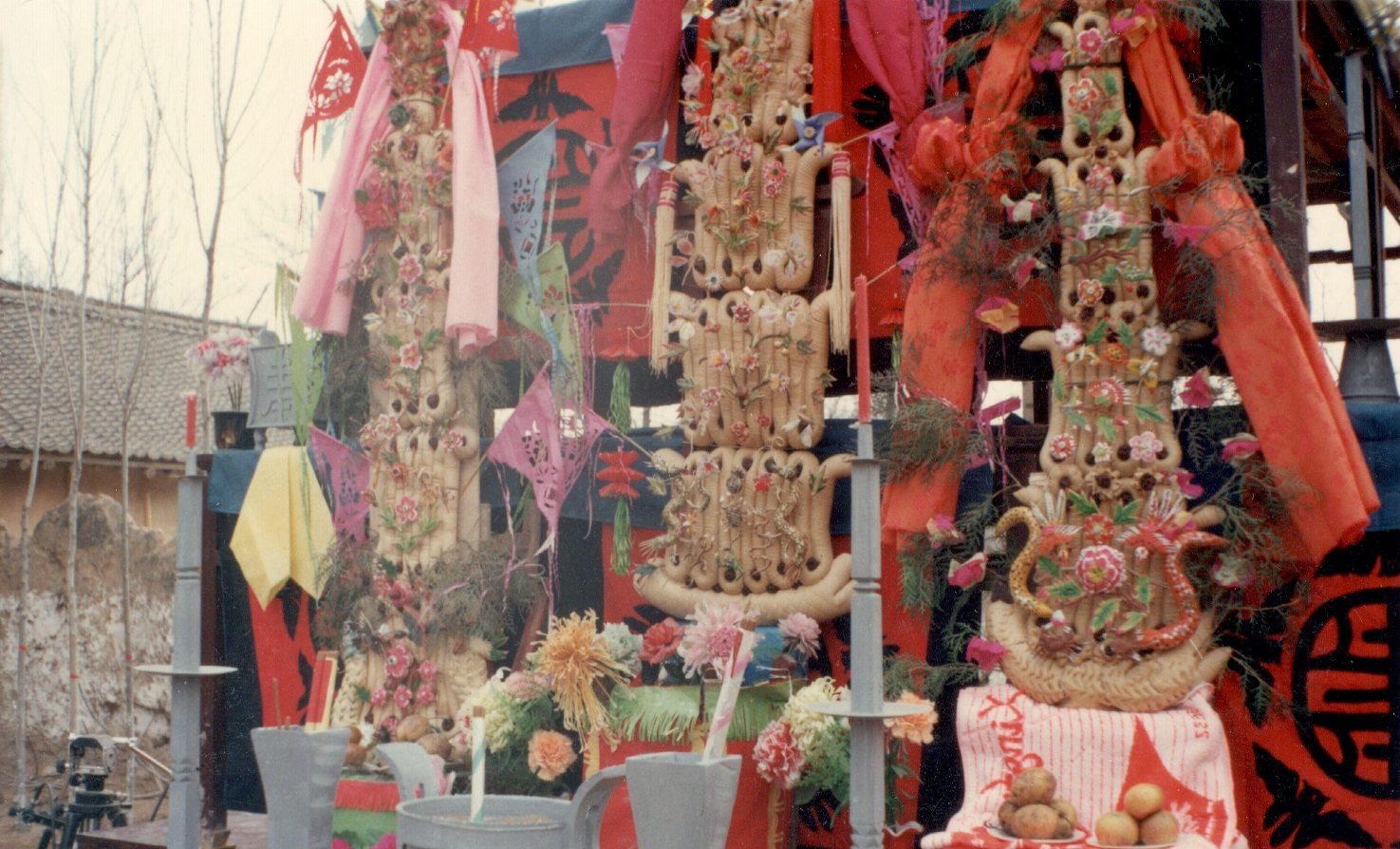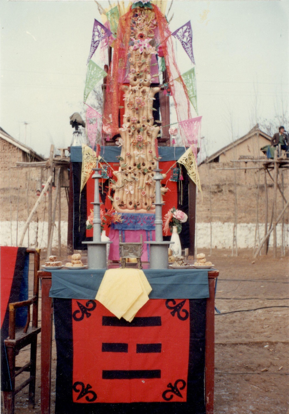 74-1990年 4⽉ 6⽇,任庄村⺠为中国傩戏学国际学术讨论会表演《扇⿎神谱》的盛况(张芳森摄影)