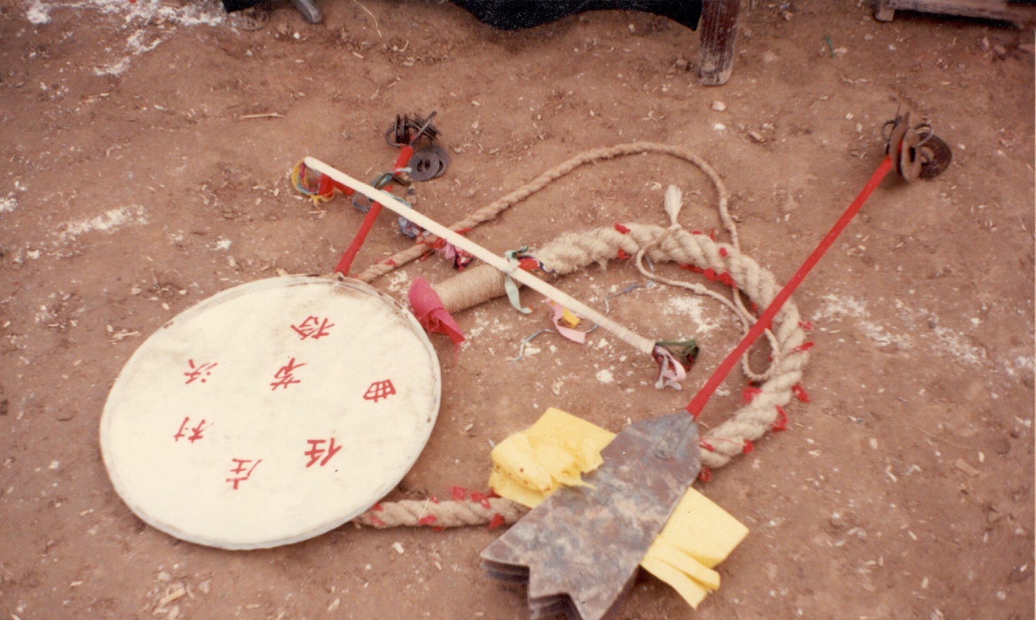 17-主要道具-”十二神家“所持的扇鼓和五彩竹鞭、”马马子“所持的马鞭和响刀