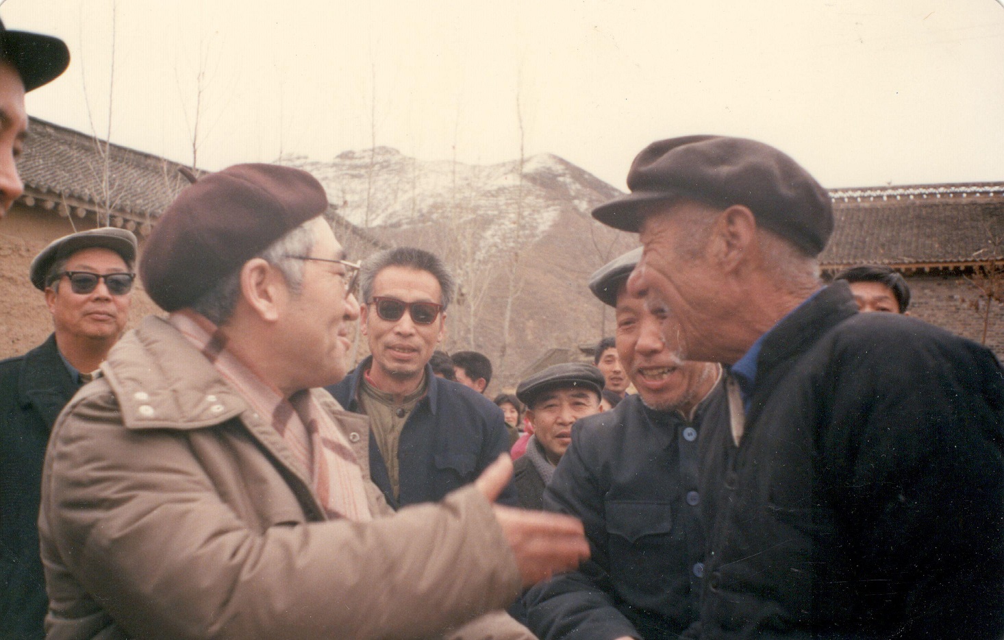25-中国傩戏学研究会会⻓曲六⼄(前左)与任庄村⺠在交谈
