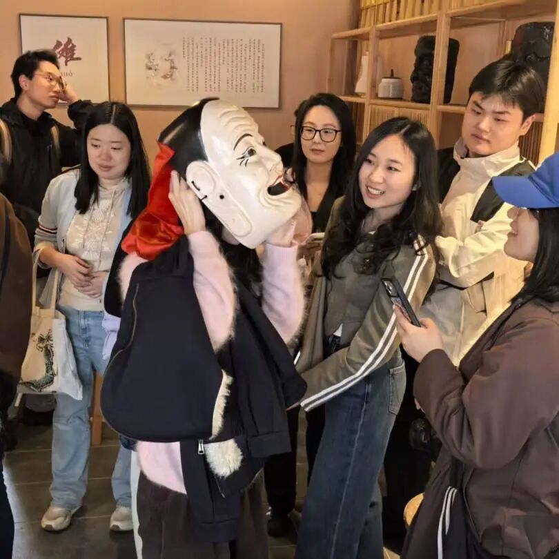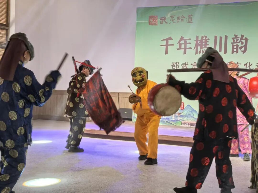 在观摩傩舞的同时,两校师生还有缘一睹稀有剧种三角戏真容。22日下午,邵武市委常委、宣传部部长张晟,文明办主任朱志明带领两校师生参观了位于邵武市区的“竹立方”生态科创馆,以及元·和平数字体验馆。邵武市人民政府党组成员、副市长邓炜华向参会师生介绍了邵武傩舞、三角戏的当下传承保护发展现状。在邵武的新产业、新技术空间,同样随处可见傩文化的身影:与游客在大屏互动引导的傩舞数字人“小和”、充满萌感的傩面表情包……傩舞不仅是邵武最富历史情韵的城市名片,也在科技创新的时代大潮中以悠远厚重的文化底色凝聚共识,再次奋勇“开路”。